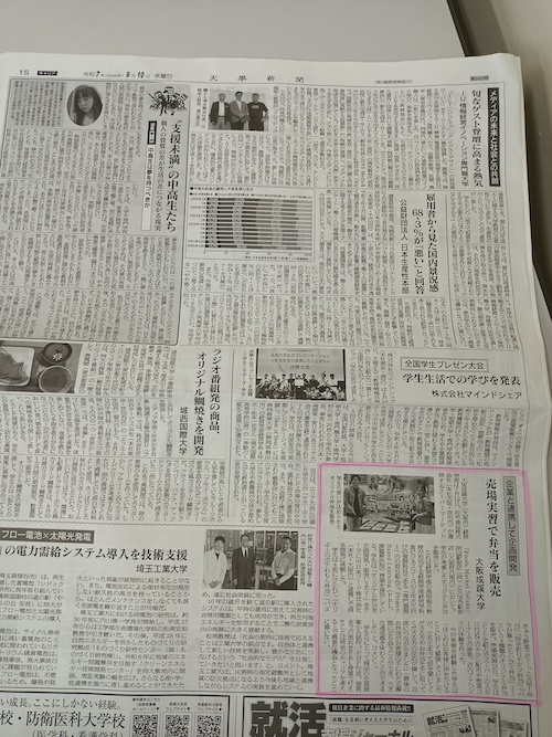 経営学部 経営学科 食ビジネスコース「専門演習1(担当 髙畑 能久教授)」の課題解決型 特別授業「オリジナル弁当を企画開発?販売しよう!」が、大學新聞(2025年9月10日)に掲載されました。