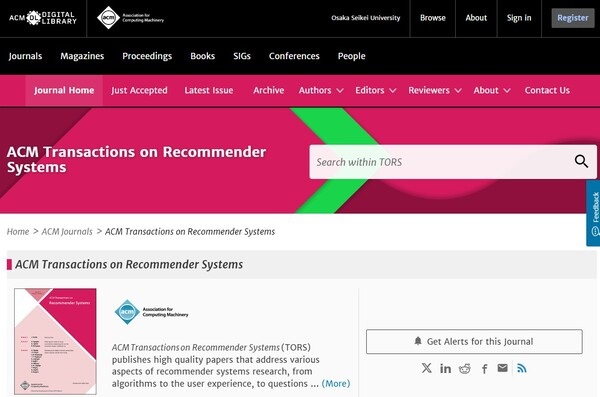 国際論文誌 ACM Transactions on Recommender Systems (TORS) [1] に、データサイエンス学部 杉山 一成 教授と奈良先端科学技術大学院大学 Peng Shaowen 助教、産業技術総合研究所 Liu Xin 上級主任研究員、九州大学 峯 恒憲 准教授との共同研究、"Balancing Embedding Spectrum for Recommendation"(「推薦システムのための埋め込みスペクトルの均衡」)[2] が採録されました。