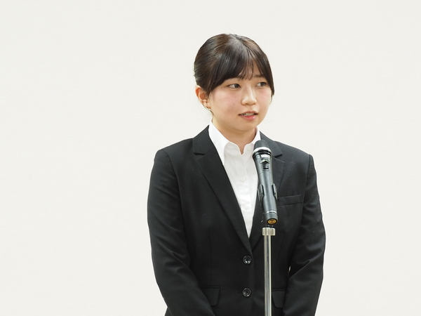 ▲受賞者を代表してあいさつをする福島 鈴夏さん(大阪成蹊大学 教育学部 2年生)